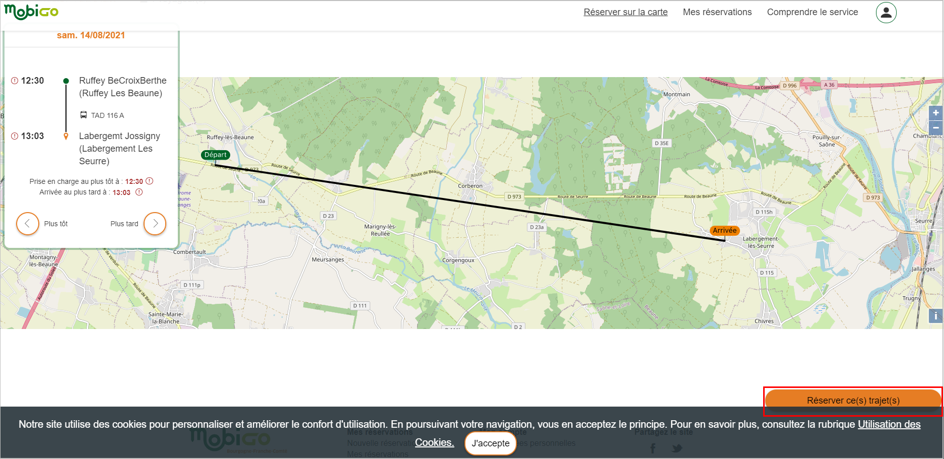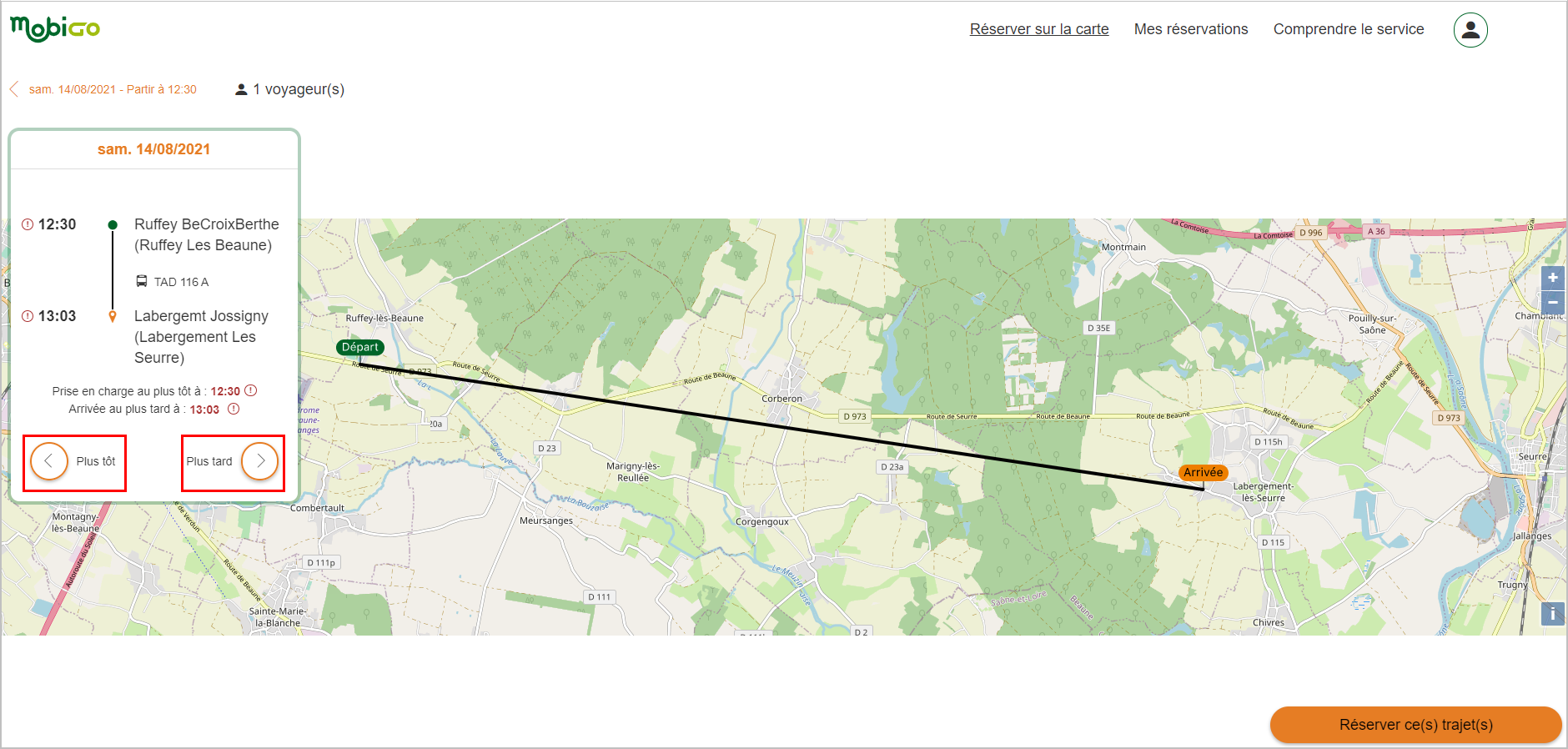 La nouvelle proposition me convient, je réserve ce trajet (bouton en bas à droite).